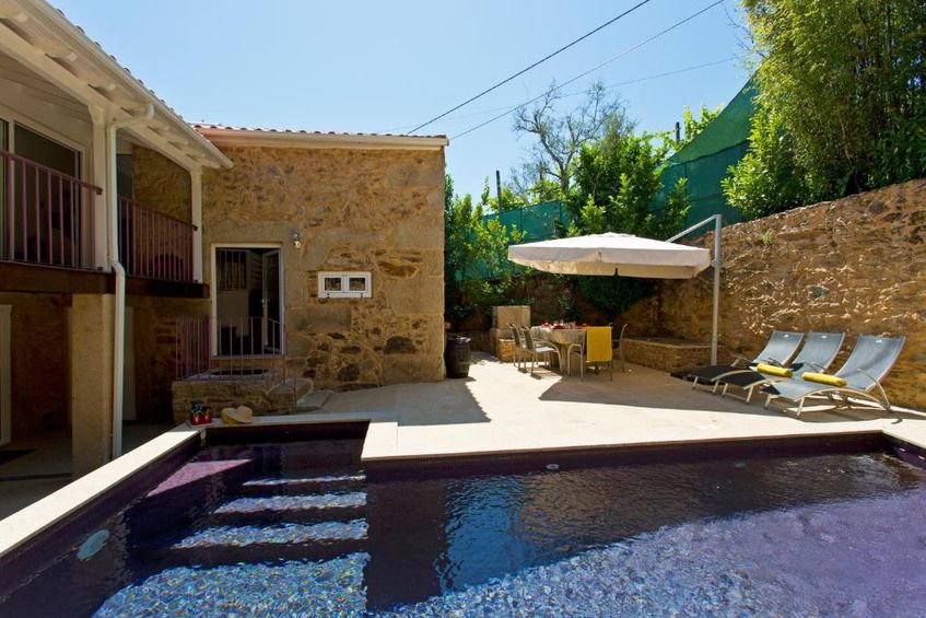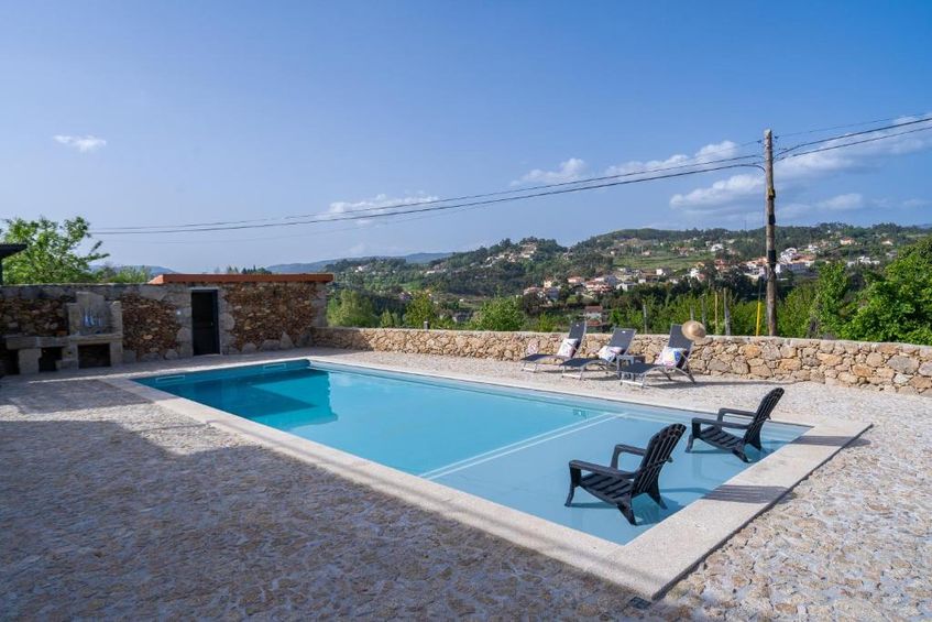 A quinta possui uma fantástica piscina rodeado de um jardim.