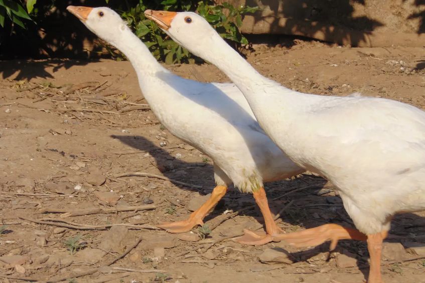 We have dogs, pigs, ducks, horses, chickens, birds and a vegetable garden.