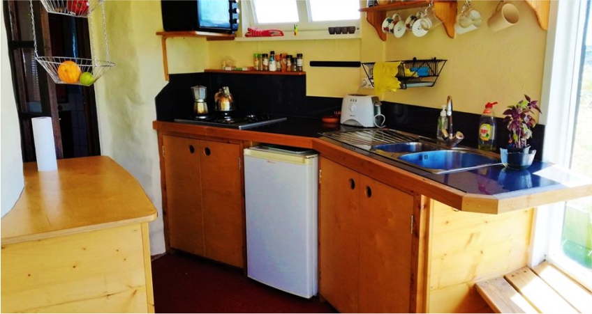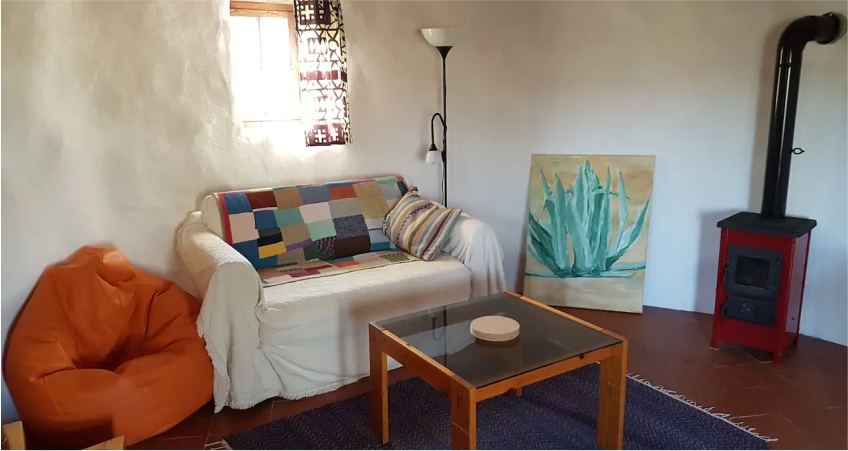 O espaço protegido é composto por dois níveis (perfeito para casais): o térreo oferece cozinha totalmente equipada, sala de jantar / estar e banheiro / chuveiro. O nível mais alto é um quarto com cama king size. O aquecimento é fornecido pelo fogão a lenha e a água é aquecida por energia solar. A casa tem água de poço, internet 4G e bom sinal móvel. A área externa possui árvores de carvalho / citros, uma horta sazonal com ervas e vegetais, um jardim ornamental e um chuveiro com bosques de bambu. Amplo lugar para lazer.